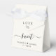 Chic ballotin crème pour votre mariage avec "L'amour est doux" écrit dans une typographie moderne simple et un script élégant avec des swashes, vos prénoms unis par un coeur et votre date de mariage.
