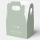 Un Ballotin de mariage simple mais élégant avec un design minimaliste moderne avec votre monogramme de deux lettres avec vos noms et votre date. Tous les éléments de conception sont en blanc sur un arrière - plan vert sage et peuvent être modifiés dans l'outil d'édition de conception. Ces boîtes de Faveur Mariage classique vont bien avec n'importe quel style de mariage.
