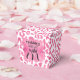 Des ballotins de style à emporter empreinte de léopard rose et blanc présentent votre message de remerciement sur un faux papier rose sur le devant en lettrage chic. Beau pour les ballotins de fête d'anniversaire et plus. CORRESPONDRE des articles dans notre magasin.