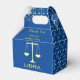 Ce magnifique ballotin de fête d'anniversaire présente une image d'art numérique d'une paire d'écailles dorées de pesée avec le mot Libra sous le texte or. Un design amusant pour les gens célébrant un anniversaire né entre le 23 septembre et le 22 octobre sous le signe étoilé de Libra. Il y a du texte personnalisé pour que vous puissiez inclure un nom et un message.