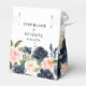 Belle boîte de faveur de mariage boho floral avec des graphismes floraux aquarelle peints à la main / roses dans les tons riches de bleu marine et rose rousse / pêche et charmante police de style de lettrage manuel. Veuillez me contacter pour toute aide sur la personnalisation ou si vous avez besoin d'un autre produit avec ce design.