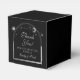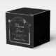 Céleste Black Silver Sun Moon Astronomy Wedding Favor Boxes présente un élégant soleil argenté, une lune et des étoiles avec un cadre argenté sur un arrière - plan noir. A l'intérieur, il y a vos informations de remerciement de mariage personnalisées. Conçu pour vous par Evco Studio www.zazzle.com/store/evcostudio