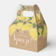 Avec des citrons et de la verdure, cette élégante boîte de faveur de mariage botanique peut être personnalisée avec vos détails spéciaux de mariage sur un fond kraft rustique. Conçue par Thisisnotme©