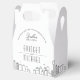 Apportez un sourire au visage de votre invité mariage avec ces boîtes à gables mignonnes et élégantes de Dallas, Texas city skyline. Elles sont dotées d'un accueil de bienvenue en face du toit, suivi du nom de la ville et de la date du mariage en dessous. En dessous se trouvent les noms des jeunes mariés dans une police de style aéré. Tout autour du fond se trouve une version moderne et déco de l'horizon unique de la ville. Sur la partie arrière sont des cloches mariages avec le message "L'amour est doux" un indicateur des friandises à l'intérieur de la boîte et l'amour du couple que la boîte représente. — Ils conviennent comme ballotin pour tout type d'événement de style mariage, comme une fête de fiançailles, un dîner de répétition ou un dîner de réception. La couleur neutre noir et blanc s'intègre parfaitement à presque n'importe quel modèle de couleur unique du mariage. Appréciez de le customiser et de le faire vous-même !