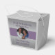 Ballotin d'image personnalisé classique - Ces ballotins sont une touche originale pour tout événement que vous planifiez. Ajoutez une image et votre texte personnalisé. Idéal pour les mariages, les anniversaires, les anniversaires et plus encore ! La conception de la boîte est faite d'un look inoxydable avec des détails violets.
