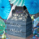 Une élégante boîte rustique de mariage avec des noms de script de signature chic et une date spéciale sur des panneaux de bois bleu avec de jolies lampes à cordes. Vous pouvez personnaliser avec votre propre message de remerciement au-dessus de deux bocaux de mason au verso. Une façon parfaite de remercier vos invités ! Conçu par Thisisnotme©