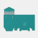 Le rabat avant de cette élégante boîte de faveur de mariage moderne comporte une bordure de parties scintillant en faux argent. Le texte personnalisable combine écriture gris argenté et polices de cuivre sur un grand écran sur un arrière - plan bleu turquoise.