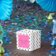 Pois noir et blanc avec accent rose chaud boîte de mariage. Motif de pois noir sur blanc et une forme rose chaud au milieu pour customiser le ballotin avec votre propre texte.