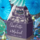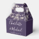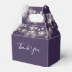 Elégant ballotin de mariage avec de jolies lampes à cordes, des noms chic de script signature et une date spéciale sur un arrière - plan violet. Vous pouvez personnaliser avec votre propre message de remerciement au contraire. Une façon parfaite de remercier vos invités ! Conçu par Thisisnotme©