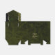 Ces élégantes boîtes de faveur de mariage modernes disposent d'un arrière - plan de géode vert olive aquarelle et vert d'eau, décoré de parties scintillant en faux or. Personnalisez-les avec les noms du couple en calligraphie d'écriture manuscrite couleur or sur une grande esperluette, et la date mariage en police cuivre.