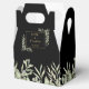 Un ballotin de mariage élégant avec des feuilles délicats d'aquarelle encadrant votre message de remerciement dans la typographie or moderne sur un arrière - plan noir. Vous pouvez personnaliser avec votre propre message de remerciement au contraire. Une façon parfaite de remercier vos invités ! Conçu par Thisisnotme©