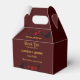 Ajoutez une touche de romantisme intemporel à votre journée spéciale avec notre boîte de Faveur Mariage Elégance Enchantée. Fabriquées avec amour, ces boîtes élégantes sont ornées d'un riche arrière - plan bordeaux orné d'un script doré et d'une rose rouge classique. La silhouette d'un couple ajoute un charme fantaisiste, ce qui en fait la touche finale parfaite pour vos faveurs de mariage ou des notes de remerciements. Customisez avec vos noms et votre date de mariage pour créer un souvenir inoubliable qui célèbre le début de votre bonheur toujours après.