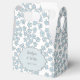 Cette boîte de faveur de mariage imprimée sur mesure présente un motif de style doodle de fleurs bleu clair de ne m'oubliez pas. Utilisez les champs de modèle pour personnaliser facilement ces boîtes de faveur de fête avec vos informations. Avez-vous plus d'informations que vous devez inclure ? Sélectionnez l'option PERSONNALISER pour ajouter du texte supplémentaire à ces boîtes.