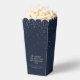 Ces boîtes-cadeaux sont parfaites pour tout couple qui planifie une fête mariage romantique. Le design est composé d'un arrière - plan bleu marine élégant avec d'élégantes étoiles en chute argentée et une formulation modifiable. Le design simple peut être personnalisé pour convenir à votre événement spécial et sera le cadeau/ballotin parfait pour toute fête à thème moderne, y compris : douches nuptiales, fiançailles, wedding showers, fêtes d'anniversaire et bien plus encore.