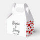 Ces élégants ballotins de typographie noir avec un motif de coeur rouge sur les côtés font l'addition parfaite à n'importe quel de vos événements mariages! Personnalisez avec les noms des mariés et des mariés et la date du mariage.