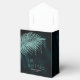 Optez pour un look éblouissant, éblouissant et glamour en utilisant les pièces de cette suite mariage comme indiqué, avec des bijoux en cascade des feuilles de palmiers incrustés de diamants ou supprimer les couches de bijoux pour un look un peu plus conservateur. Cet ensemble présente des feuilles dans un pastel chatoyant turquoise contre un arrière - plan turquoise et texturé plus foncé. Le ballotin mariage 'Love & Thanks' montré ici a une bordure de feuilles pétillants, une police serif élégante avec le nom de la mariée et le nom du marié et la date du mariage. Entrez facilement vos propres informations de mariage en utilisant le modèle fourni. Affichez le lien de collection sur cette page pour voir tous les éléments correspondants dans ce bel ensemble ou recherchez ID830 pour voir d'autres options de couleur pour cette conception.