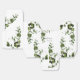 Ce design présente des feuilles d'eucalyptus rustiques. La verdure d'eucalyptus est complétée par un élégant texte noir. Les tons verts poussiéreux de la feuille d'eucalyptus créent une atmosphère rustique de jardin boisé de campagne. Design ballotin de mariage élégant avec des éléments modernes. Des invitations de mariage et d'autres articles de papeterie sont également disponibles.