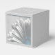 La jolie boîte de mariage Blue Floral Highlights Mariage Favor Box peut être personnalisée avec les noms de la date de la mariée, du marié et de la cérémonie de mariage. Ces élégantes boîtes de fête botanique personnalisées comprennent une numériquement photo florale rehaussée d'une fleur marguerrière avec des reflets bleu clair et un arrière - plan gris argenté.