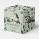 Ces boîtes de faveur de mariage gothique irlandais uniques et élégantes présentent de belles illustrations irlandaises dessinées à la main à l'encre noire sur un fond vert sauge élégant. Avec des trèfles verts, des crânes, des corbeaux, des roses vertes et des fleurs sauvages, ce sac-cadeau vert festif est idéal pour les mariages irlandais, les douches de mariée, les fêtes de mariage, les enterrements de vie de jeune fille et autres célébrations de mars ou irlandaises. Fond élégant vert sauge.