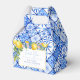 Boîte de faveur de mariage méditerranéen citrons italiens carreaux bleus.