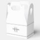 Une police de caractère audacieuse et décorative attire immédiatement l'attention et donne le ton à la plupart des pièces de cette suite mariage moderne et minimaliste. La boîte de faveur de mariage montrée ici dispose unique "Mr. & texte de Mme et un modèle pour ajouter facilement vos noms et votre date de mariage. Une esperluette aux accents cardiaques ajoute un accent amusant supplémentaire. Recherchez ID887 pour voir tous les produits de ce jeu de mariages.