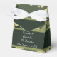 Motif moderne de chasse militaire verte, cette boîte de faveur traditionnelle de mariage formelle, peut facilement être personnalisé avec des noms de mariée et de mariée aux modèles pour créer un élégant ballotin personnalisé unique pour vos occasions spéciales de chasse, rouge ou l'armée et des célébrations, partie d'un ensemble coordonné de suite mariage.