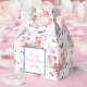 Joli contenant de faveur de mariage avec des fleurs colorées en rose, violet et orange, des papillons et du feuillage. Parfait pour un mariage printanier ou estival. Les mots peuvent être modifiés pour s'adapter à vos propres détails ou exigences.
