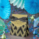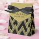 Cet élégant design de ballotin de mariage est doté d'un motif géométrique d'inspiration art déco en noir et beige doré et est prêt à customiser avec vos informations spécifiques.