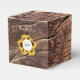Ce design présente des tournesols rustiques sur fond de bois. La couronne de tournesol encadre élégamment la date mariage. Les tons jaunes, verts et marron créent une atmosphère rustique de jardin de campagne naturel. Design ballotin de mariage élégant avec des éléments modernes. Des invitations de mariage et d'autres articles de papeterie sont également disponibles.