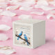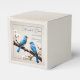 Personnalisez une boîte de faveur de mariage unique pour les invités avec cette boîte de préférence de mariage Bluebirds. Le design ballotin présente une paire d'oiseaux bleus reposant sur une branche en bois avec des fleurs de printemps contre un arrière - plan texturé en papier. Personnalisez avec les noms du marié et de la mariée avec la date du mariage. Papier à lettres mariage supplémentaire disponible avec cette conception aussi.