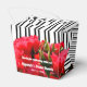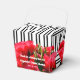 Les boîtes de faveur de fête de style à emporter de 2" x 2" x 2,75" présentent des roses rouges aquarelles sur des rayures noires et blanches et votre personnalisation de remerciement à l'avant et à l'arrière. Voir les articles CORRESPONDANTS dans notre collection.