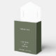 Elégante boîte de faveur de mariage vert olive personnalisée avec vos noms, initiales monogrammes, date mariage, et message de remerciement spécial. Conçu par Thisisnotme©