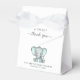 Des boîtes-cadeaux pour baby shower "un gentil merci", très neutres pour le genre, sont écrites dans un mélange de typographie gris et d'un script élégant avec des swashes et une aquarelle verte à la menthe pastel d'un bébé éléphant. Personnalisez le nom et la date de la douche de la future mère dans une simple typographie grise.