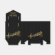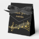 Un élégant arrière - plan noir et décoré de faux notes de musique dorée sur l'avant et le dos. Script de style en lettres d'or et le texte : Merci. Modèle pour un nom.
