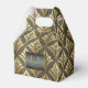 Cet élégant ballotin fait partie d'une suite de mariages Art déco sophistiquée, dotée de cadres luxueux et de détails dorés complexes et chatoyants. Les lignes classiques dégagent un charme vintage glamour, avec une palette de couleurs noir, or brillant et gris chaud. Les détails ornés ajoutent une touche de sophistication à ce design intemporel. Ajoutez vos initiales, la date du mariage et le message de remerciement en utilisant le modèle fourni. Recherchez ID1033 pour voir d'autres produits mariages dans le jeu de conceptions.