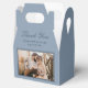 Elégant coutume mariage bleu poussiéreux ballotins photo. Personnalisez facilement ces boîtes de faveur de mariage avec vos détails mariages. Nos boîtes personnalisées pour mariage sont parfaites pour votre mariage bleu poussiéreux classique. Ces ballotins de remerciement personnalisés peuvent être customisés à d'autres occasions, comme des douches nuptiales.