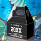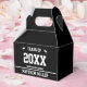 Ce ballotin noir et blanc dit "Classe de 20xx" en gros texte blanc. (Vous pouvez modifier l'année si nécessaire.) En bas, il y a un texte blanc que vous pouvez modifier pour afficher le nom correct pour le diplômé. Les casquettes de la diplômée blanche sont de chaque côté de l'expression "Classe de". Vous pouvez également modifier le message personnalisé pour vos invités. (Montré : Merci À Venir)