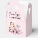 Ce ballotin rose très doux est une excellente façon de remercier tous vos invités de s'être joints à vous dans votre célébration spéciale du baptême. Floral dans différentes teintes de rose et de gris complètent ce design. Bon appétit !