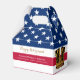 Ajoutez la touche finale à votre fête de retraite militaire avec ces ballotin militaire design USA American Flag et fournitures de parti. Drapeau américain en rouge moderne blanc et bleu, étoiles et rayures, avec design de bottes de combat en or. Ce parti du drapeau américain est parfait pour une fête de retraite militaire, des déploiements militaires, des célébrations de bienvenue militaire, des diplômes militaires et des soldats qui partent. Parfait pour tous les militaires, l'armée, la protection de la frontière, la patrouille frontalière, l'agent de conservation, le garde du parc, le garde du gibier, l'application de la loi fédérale. Personnalisez cette bannière patriotique du drapeau américain avec votre nom de soldats et félicitations, bienvenue chez vous, bonne chance ou heureuse retraite. Consultez notre collection pour obtenir des invitations à la retraite, des cadeaux d'obtention de diplômes militaires, des faveurs pour les fêtes et des fournitures. DROIT D'AUTEUR © 2021 Judy Burrows, Black Dog Art - Tous droits réservés. Militaire USA American Flag Bottes Parti de retraite Favoriser Box