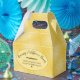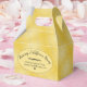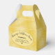 Écriture manuscrite de script au centre d'une forme ovale avec texte customisé pour le nom commercial apiculteur ou apiaire et coordonnées pour annoncer votre marque au point de vente pour un marché agricole ou une foire grange. Le Gable Box convient à deux 4 oz. Mini jarres de stockage Mason (environ 2 po de rond x 3,5 po de hauteur chacune). Envelopper vos produits de miel avec notre papier de tissu pour protéger les pots en verre. Créez un ensemble de étiquettes et d'emballages customisés pour votre entreprise en nous contactant avec le lien ci-dessous. ©dotpattern