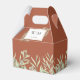 Un ballotin de mariage élégant avec des feuilles délicats d'aquarelle sur un arrière - plan en teracotta encadrant vos initiales monogrammes, date spéciale, et message de remerciement mis en typographie moderne. Une façon parfaite de remercier vos invités ! Conçu par Thisisnotme©