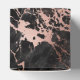 Cette boîte cadeau comprend un arrière - plan en marbre noir avec des reflets d'or rose. Personnalisez l'avant avec votre initiale en noir sur un cercle en métal brossé rose à double bordure en faux or.
