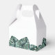 Un grand Monstera Topical Bordure de palmier feuille sur un petit ballotin à gable avec un style rétro moderne de ville de plage du milieu du siècle, parfait pour une île tropicale, destination, ou mariage de plage. Le thème vert tropical moderne peut être customisé avec votre message ET couleurs. Utilisez le MODÈLE DESIGN EDITOR pour le modifier, comme vous voulez le coordonner avec votre jeu de couleurs mariage.