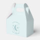 Ballotin baby shower sucré pour votre petite soirée à thème scintillante. Il y a une forme de lune et d'étoiles en faux feuille de menthe. Customisez ce produit en ajoutant le nom de la maman à être et la date de l'événement.