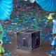 Ornate vintage grunge désespéré fête de cirque favoriser les boîtes aux accents de violet et d'or.