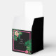 Une botanique tropicale néon rose moderne et rétro sur un arrière - plan noir. Un beau design mariage idéal pour l'été. Design plante tropical néon rose parfait avec palmiers, fleurs d'Hibiscus roses et fleurs de Plumerias Frangipanis. Les couleurs noir, rose et vert dominent ce néon rose tropical. La typographie calligraphique moderne contraste parfaitement avec le design mariage noir et rose. Un élégant design ballotin de mariage élégant avec des éléments simples et modernes. Des articles de papeterie mariage correspondants et d'autres formats d'invitation de mariage sont également disponibles.