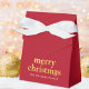 Il s'agit d'une boîte rouge de faveur dans le rouge moderne festif avec Joyeux Noël dans une typographie or audacieuse et élégante. Ce serait parfait pour ceux qui cherchent à accueillir des fêtes de Noël ou des déjeuners élégants et veulent envoyer leurs invités à la maison avec des faveurs dans le style.