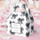Jolie boîte de faveur de douche de mariée avec un ruban noir à nœud coquet. Les mots peuvent être changés pour s'adapter à vos propres détails ou exigences