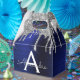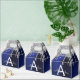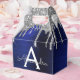 Boîte-cadeau de fête en papier métallisé à motif monogramme et initiale avec faux foil bleu marine et argenté, paillettes scintillantes et métal brossé. C'est le cadeau parfait pour un anniversaire de 16 ans, un mariage, une douche de mariée, un anniversaire de mariage, une baby shower ou une fête de bachelorette pour quelqu'un qui aime le luxe clinquant et les styles chics.