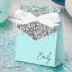 Boîtes à cadeaux de fête en papier à monogramme et initiale scintillante argent sarcelle bleu aqua girly Cela fait le cadeau parfait pour un 16e anniversaire, un mariage, une douche de mariée, un anniversaire, une baby shower ou une fête de bachelorette pour quelqu'un qui aime le luxe clinquant et les styles chic.